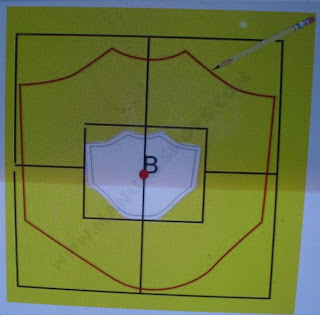 Bien, supongamos que tengo un perrito que mide desde el cuello hasta el comienzo de su colita 37 cm., atravesaremos con una línea vertical de 37 cm. por el centro del molde como podemos ver en la imagen de mas abajo. Busquen el punto medio del molde, que no es otra cosa que el centro del cuadrado en el que lo encerramos en el paso anterior. Dividan en dos el largo, por ejemplo: 37 cms : 2= 18,5 y tracen desde el punto medio hacia arriba una linea de 18,5 cm y desde el punto medio hacia abajo otra linea de 18.5 cm.. De esta manera van a tener el calculo exacto de los centímetros a ampliar en el resto de los moldes.